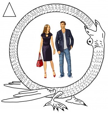 Pour l'image de gauche, plus ancienne puisqu'on reconnait la croix ansée Egyptienne sur la coiffe, la droite et la gauche sont inversés, une autre inversion est visible sur le haut des sceptres, les deux de droite ont des haut rond et pleins (ils sont donc émissifs) et sur l'image de gauche le haut est en demi lune, creux (il est donc réceptif comme l'antenne parabolique). Une notion voisine est celle de la dualité entre la qualité (l'information ou la connaissance) et la quantité (la puissance). Cette dualité se retrouve aussi dans l'étalement des énergies, du plus subtil au plus grossier, comme cela est mentionné sur la page "énergies subtiles". La maîtrise (ou le couronnement spirituel) est représentée par l'aura lumineuse des personnages, celui avec le globe surmonté d'une croix a une aura autour de la tête (comme on peut en voir sur certaines icônes figurant des saints), sa couronne est figurée par des ailes. le personnage de droite est entièrement inclus dans une aura lumineuse avec une source de lumière au centre, au niveau de son sexe, sa couronne est une vrai couronne. La liaison que ces personnages ont avec le "ciel et la terre" fait que eux mêmes deviennent rayonnants. Comme la lune qui capte l'énergie du soleil et la renvoie vers la terre, ou comme l'ampoule électrique qui tire son énergie depuis la centrale nucléaire et vous renvoie de l'énergie lumineuse. Le livre (veut dire "poids" en anglais) est ce qui a été stocké, pas seulement comme le pétrole ou le charbon qui sont des énergies "quantitatives" mais plutôt comme connaissance, comme accumulation du savoir qui sont des énergies "qualitatives". Le livre s'utilise en général horizontalement. Le sceptre (horizontal) qui est un peu un caducée simplifié représente l'énergie flux (le présent immédiat) qui peut sous certaines conditions se stocker (s'écrire dans les livres de poids) pour se déstocker plus tard (réversibilité). L'exemple en est donné par les énergies non renouvelables mais stockées depuis des millions d'années comme le charbon ou le pétrole, et l'énergie solaire abondante mais difficile à stocker. De même toute la sagesse multi-millénaire des hommes est écrite (stockée) dans des textes sacrés (ou non sacrés) ou chacun peut puiser pour nourrir et stimuler sa conscience (qui produit un flux ou un feu = énergie). |