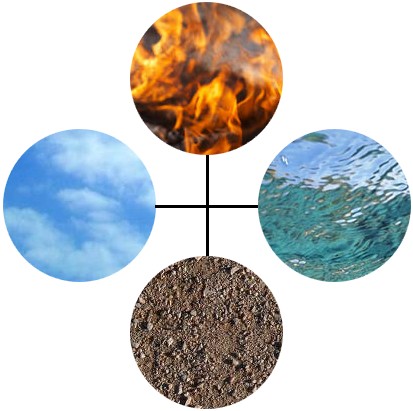 (le soleil) et de la terre semble assez évidente, le feu en haut,
