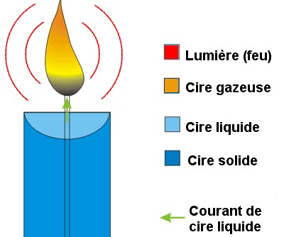 Il y a le corps de la bougie en cire solide, la cire fondue, il