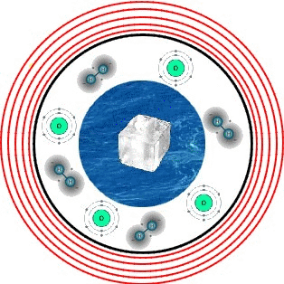 en effet l'eau sous forme de glace (solide ou terre), sous forme liquide