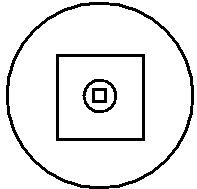 carré au centre, la phériphérie circulaire