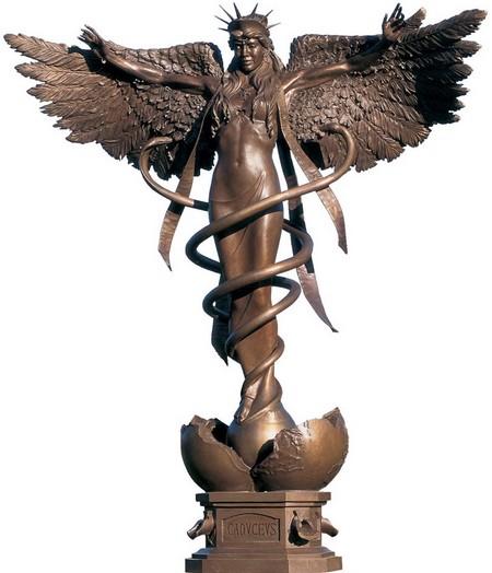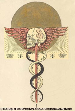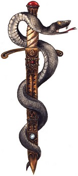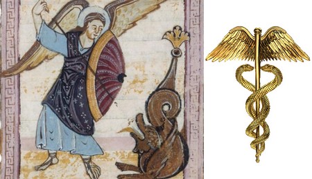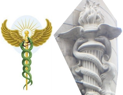 Le symbole du caducée ou l'on retrouve le triptyque serpent/oiseaux/lumière.