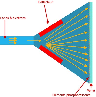 téléviseur, l'image est formée par un canon à électrons situé à