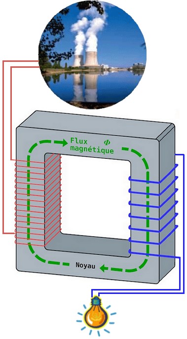 mais pouvant être dévié par les bobines qui s'allument (en vert)