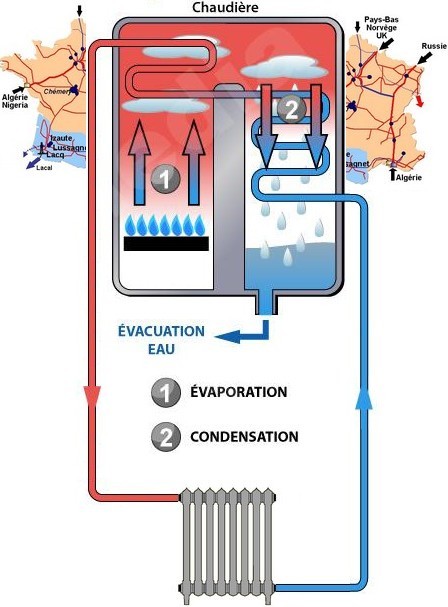 (les deux sinusoïdes en opposition de phase) l'équilibre entre les