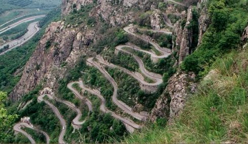 directe et le chemin sinusoïdal de la route en contrebas.