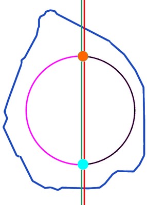 à l'axe vertical. Les opposés se rejoignent en bas (le fondement)