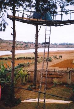 Plate forme à 7.5 métres du sol avec tente de camping |
