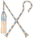 Les attributs du pharaon, la crosse (Sceptre Héka) et le flabellum (Nékhekh) |